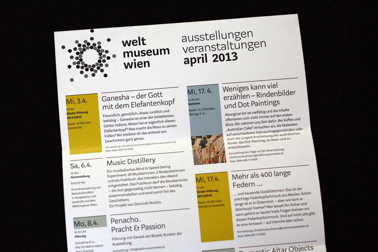The Museum of Ethnology in Vienna, Austria, changed its visual identity and becomes the Weltmuseum Wien. The Austrian design office Lichtwitz Leinfellner, responsible for the new identity of the museum, chose Marat Sans as the new corporate typeface. The new logo consists of small circles which seem to meet and form a bigger circle. The round and warm letter forms of Marat Sans fit perfectly in this picture. The typeface is used for the logo and all printed and digital media. On the museums webpage you can see the Marat Sans webfonts in action.