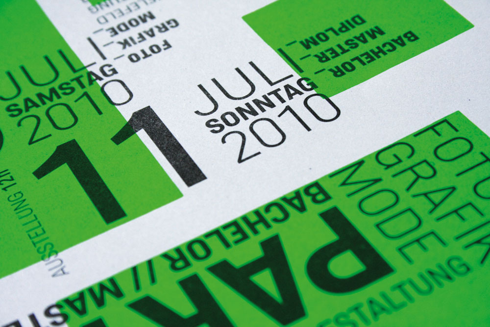 Booklet for the design graduation show of the University of Applied Sciences in Bielefeld. Designed with Helsinki by Christian Andreas, Maria Arndt, Clarissa Becker, Christin Ferri, Alex Katchko and Johannes Nathow. Looks great!