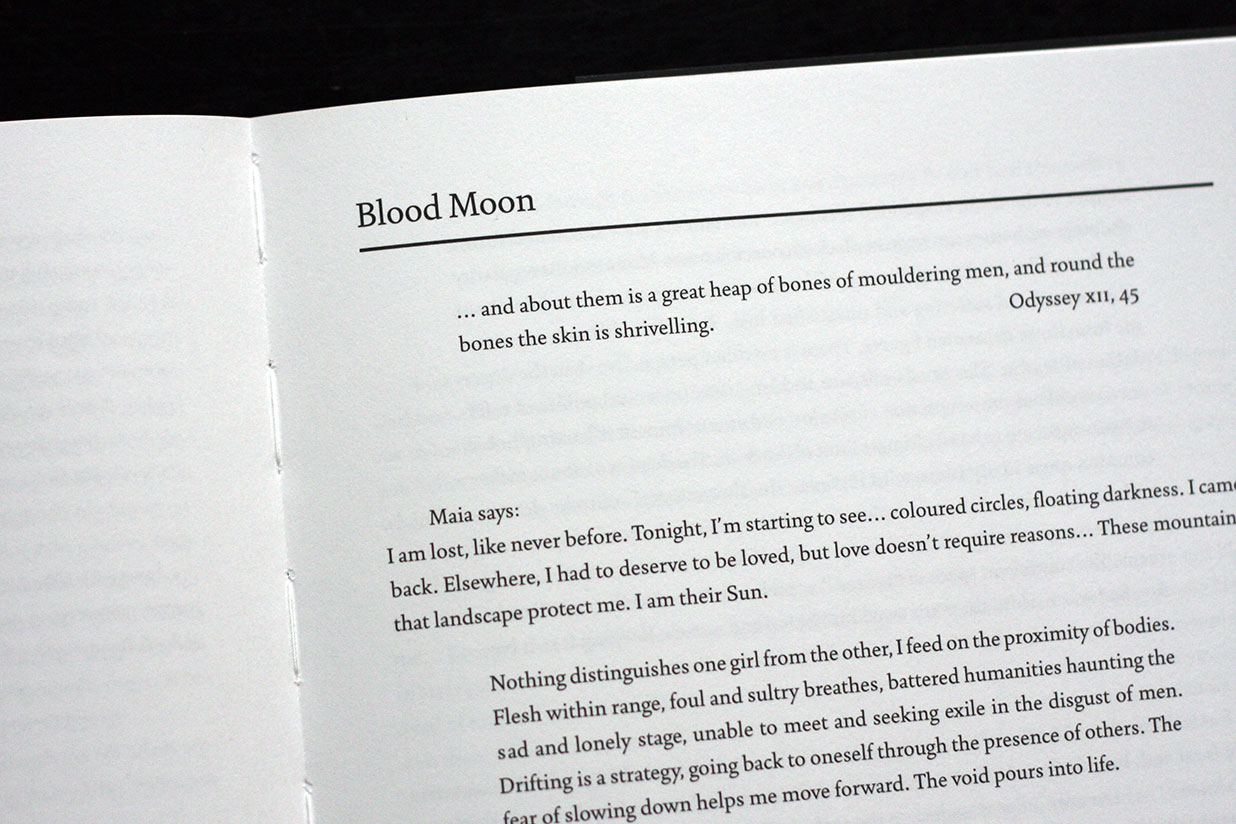 Augustin in “Eclipse” with photographs by Antoine d’Agata.