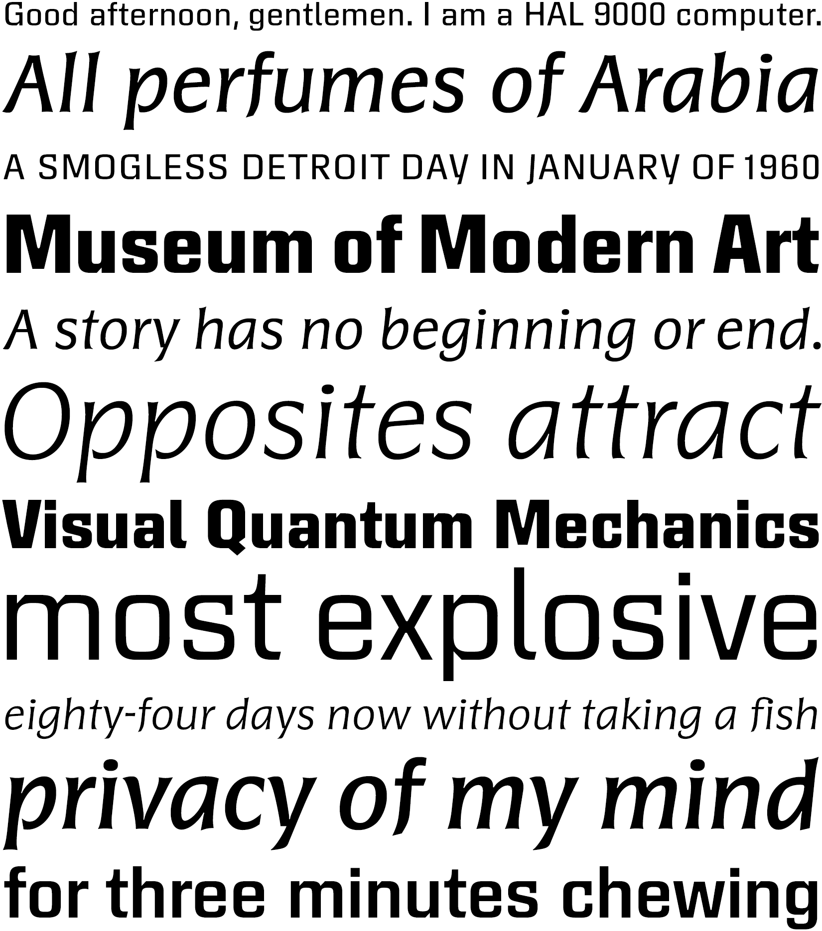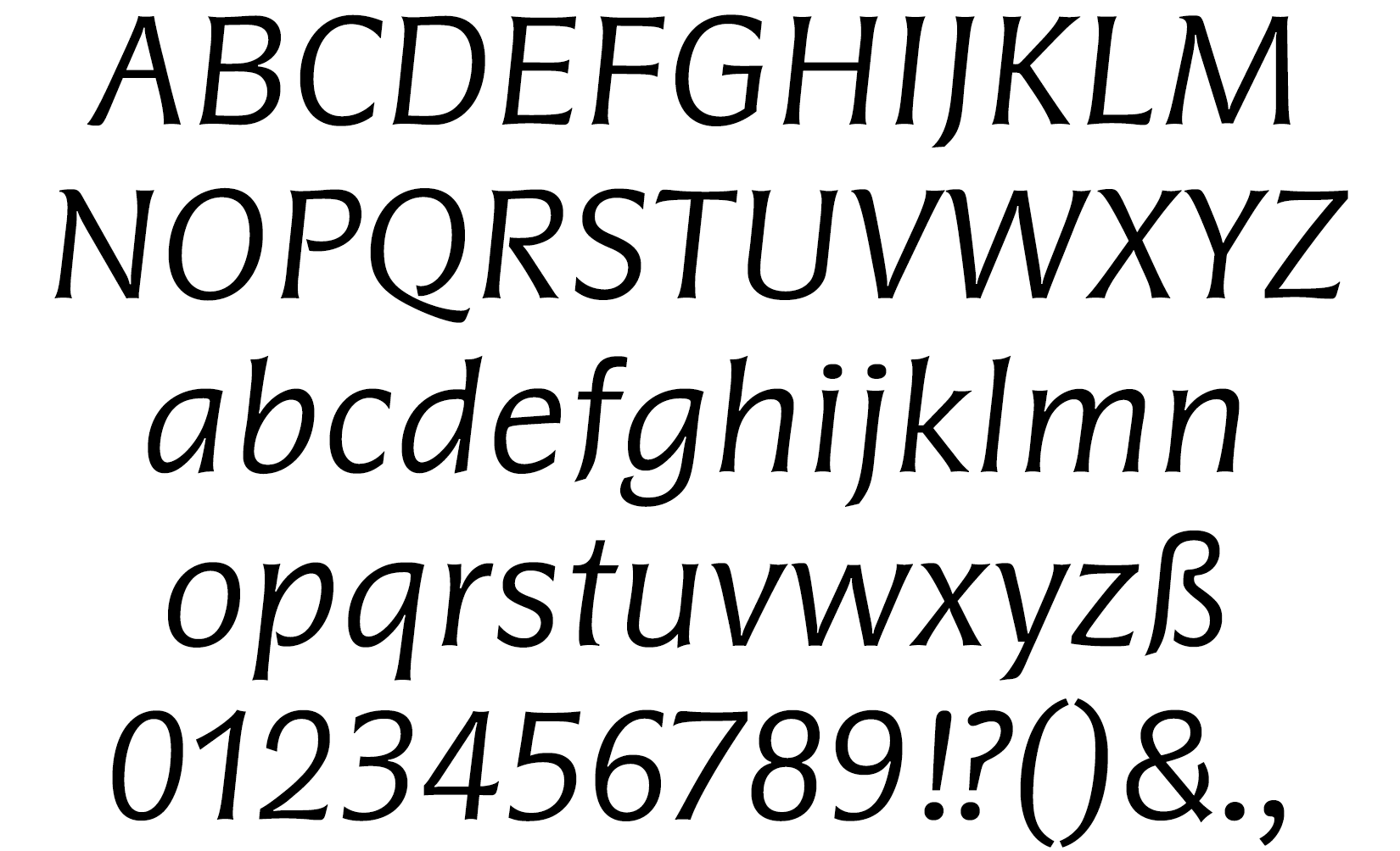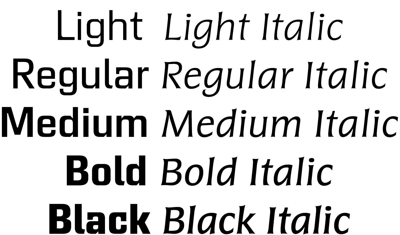 Rolls belongs to the Eurostile font style, created by Aldo Novarese in the 1960s. Typically round letter elements are transformed into straight lines with short corner curves, resulting in a cohesive, geometric typeface. The calligraphic italic, however, forms an exceptionally exciting contrast. This differentiation allows for typographic distinction between various parts of the text and establishes an striking typographic language.