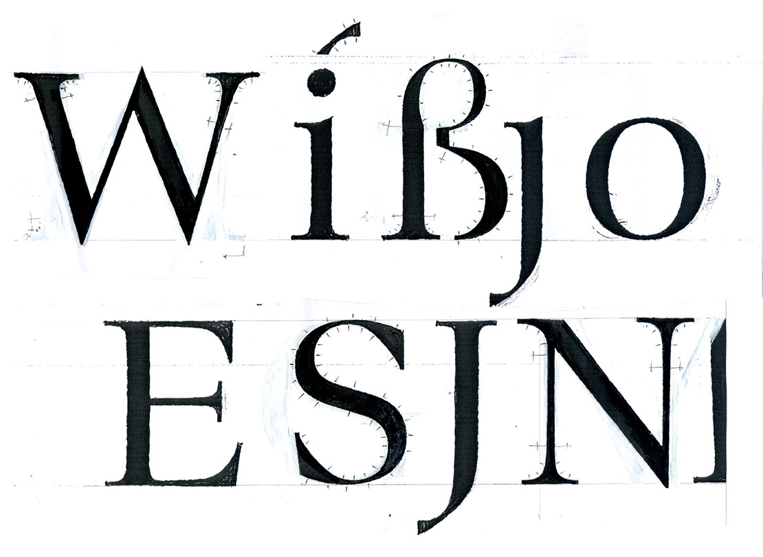 Each alphabet is an organic unity, one determined by the temperament, understanding of form, and character of its creator. In this, Salden is a perfectionist, revising every form and character until he is satisfied. As a designer, he is distinguished by his belief in strong virtues, ones lost in the passage of time: diligence, perseverance, humility, patience. His accuracy in drawing and sense of balance and harmony in form comes from the designer’s well-practiced skill in calligraphy, graphic design and drawing, and his many years of experience designing typefaces.
