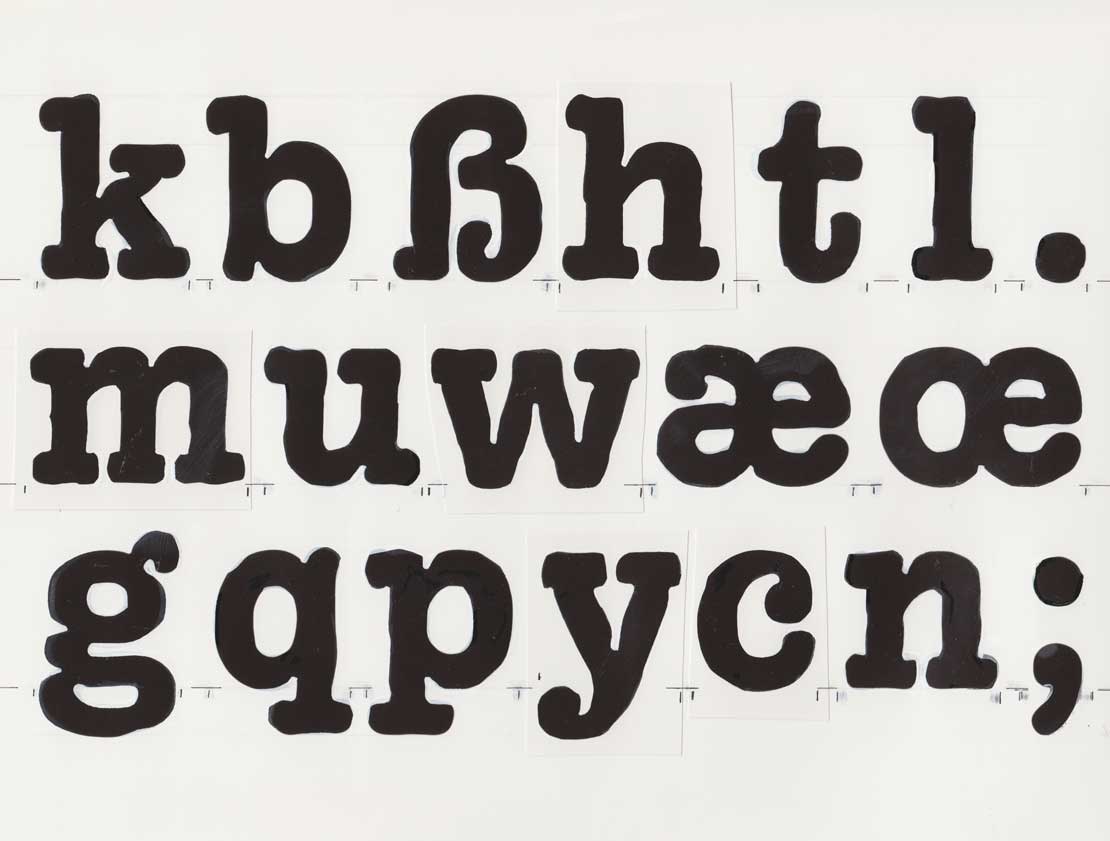 The designer is the product of a time in which each character had to be written or drawn by hand, with corrections meticulously finished with a brush. Weeks, if not months, of work went into every font before they could be produced as a template for phototypesetting, a feat that is hard to imagine today. This may be the very reason that Salden recommends a slow, patient and manual work process, particularly in type design: “Experience doesn’t come through a computer, but by using pen, ink and brush. New ideas come from your head, your hands, and your efforts.” Of course, Georg Salden doesn’t underestimate the benefits of working with computers, but rather, “it does not lead to creative, strongly readable alphabets. A power failure should not interrupt the continuation of our type culture.’